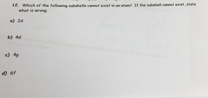 Solved Which Of The Following Subshells Cannot Exist In On Chegg Com